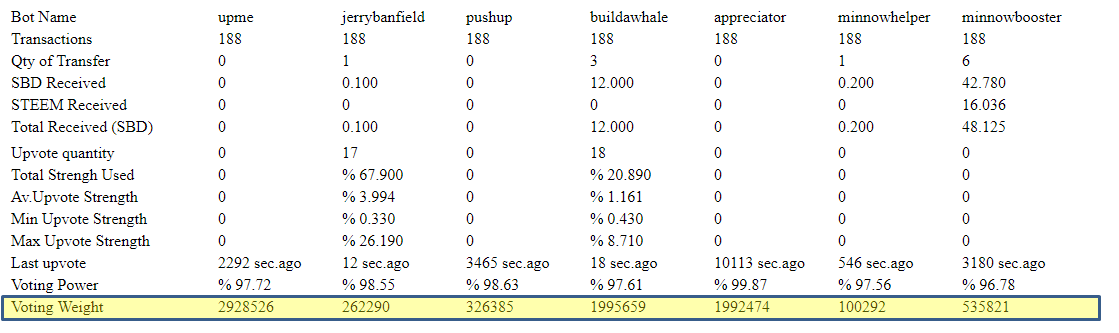 This feature is very important indicator. This shows how much the upvote bot upvotes the posts at the minimum bid.