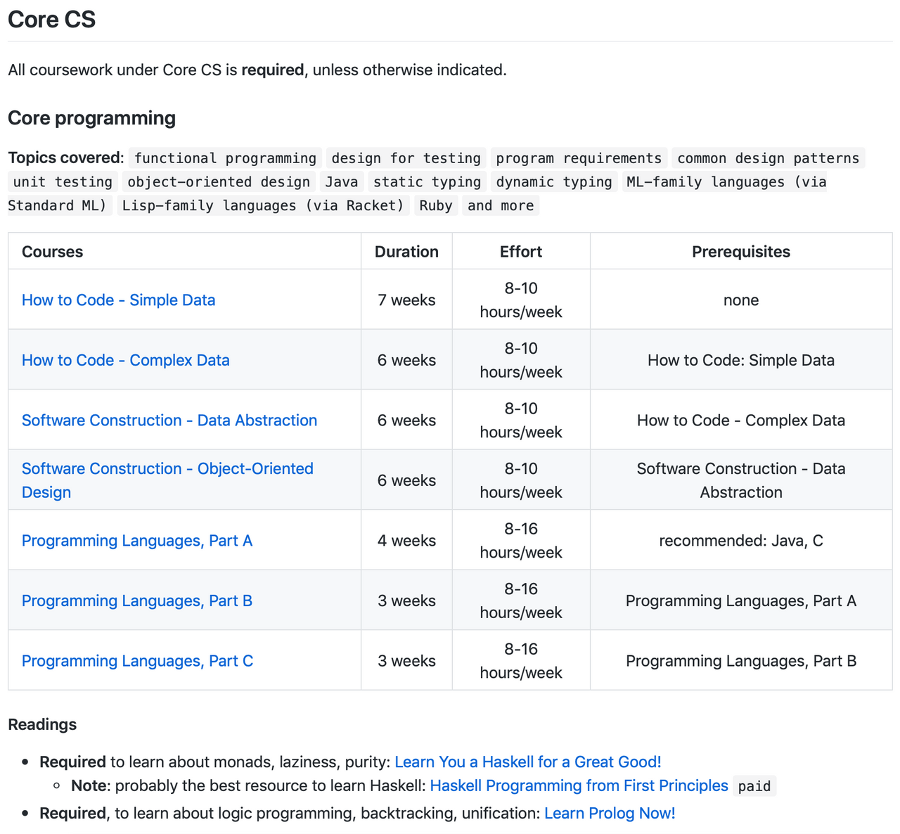 From this, we can see that this open source CS degree is not just a compilation of tutorials, but it has a very heavy content with insightful content. It is not meant for people that want to do something in their free time (but those people can too) to give it a shot on getting a new job. This degree is for people that really want to be a computer scientist, but can't afford traditional courses.
