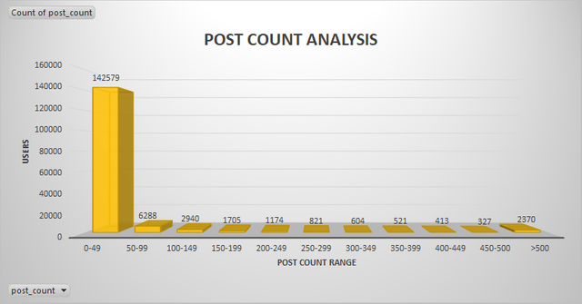The users who registered in January 2018 have made a total of 5,886,020 post (including comments). 98.51% of users have made less than 500 post within the period under review.