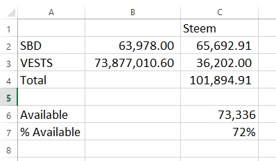 Based on this, the available STEEM is 72% of payment claims accepted. A lot higher than I expected