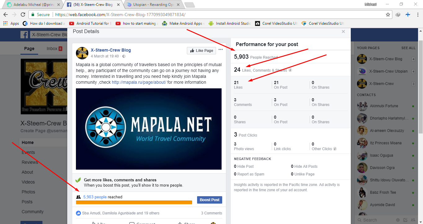 I chose Facebook to publicize this platform using this FACEBOOK PAGE was used to promote MapalaNet and this Facebook POST was boosted to reach more Nigerians aged between 18-65 years of age.