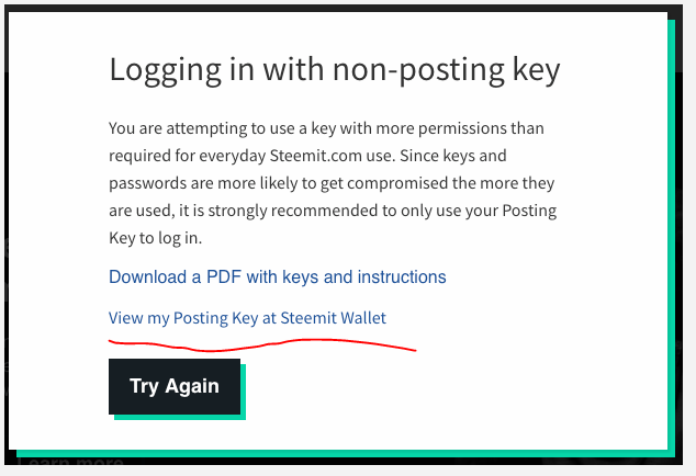 Text enhancement to non-posting key dialogue box #3290 by @thecryptodrive who suggested a re-wording of the text in the modal that pops up when you login into the Condenser with another key than the posting key: