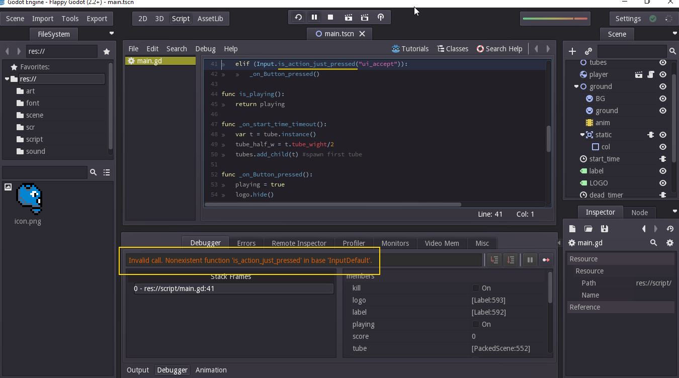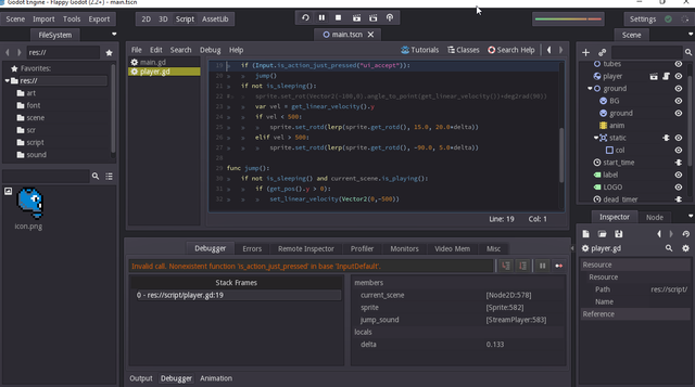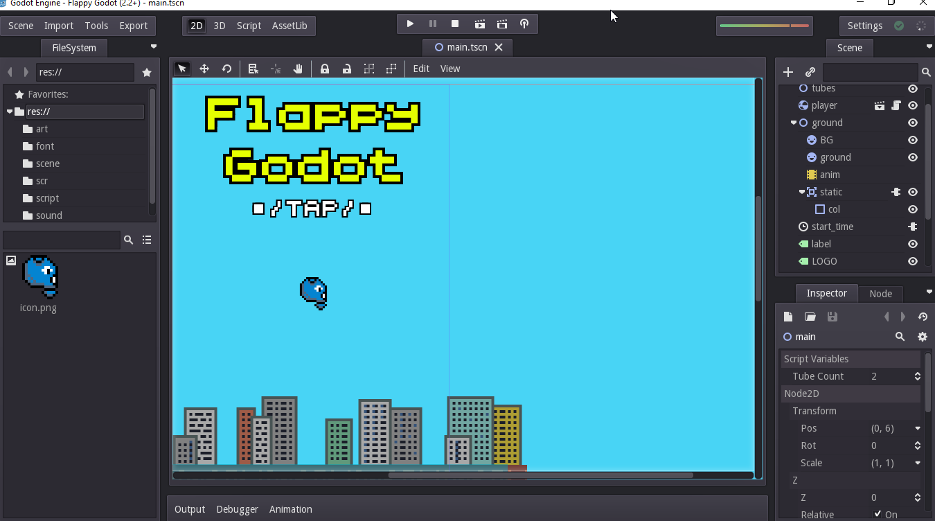 Screens will then flash in front of your eyes, don't panic! Eventually you will be be shown the Flappy Godot project editor: