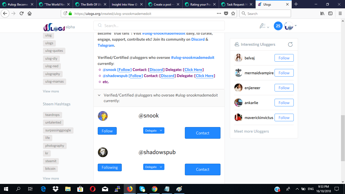 1. Snook is on the "followed list" of @uloggers (on the greylist of certified uloggers).