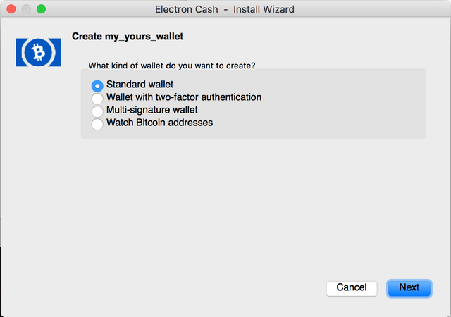 In the wallet creation window, type in a name for your wallet. It's a good idea to put "yours" in the name so you know that it refers to your Yours wallet :)