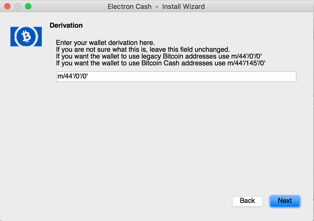 Next, leave the path alone. The path should be m/44'/0'/0'