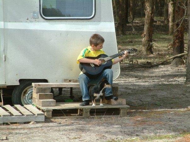 Jarrah's first guitar and starting to learn - he's now an amazing musician and I'm super proud of him!