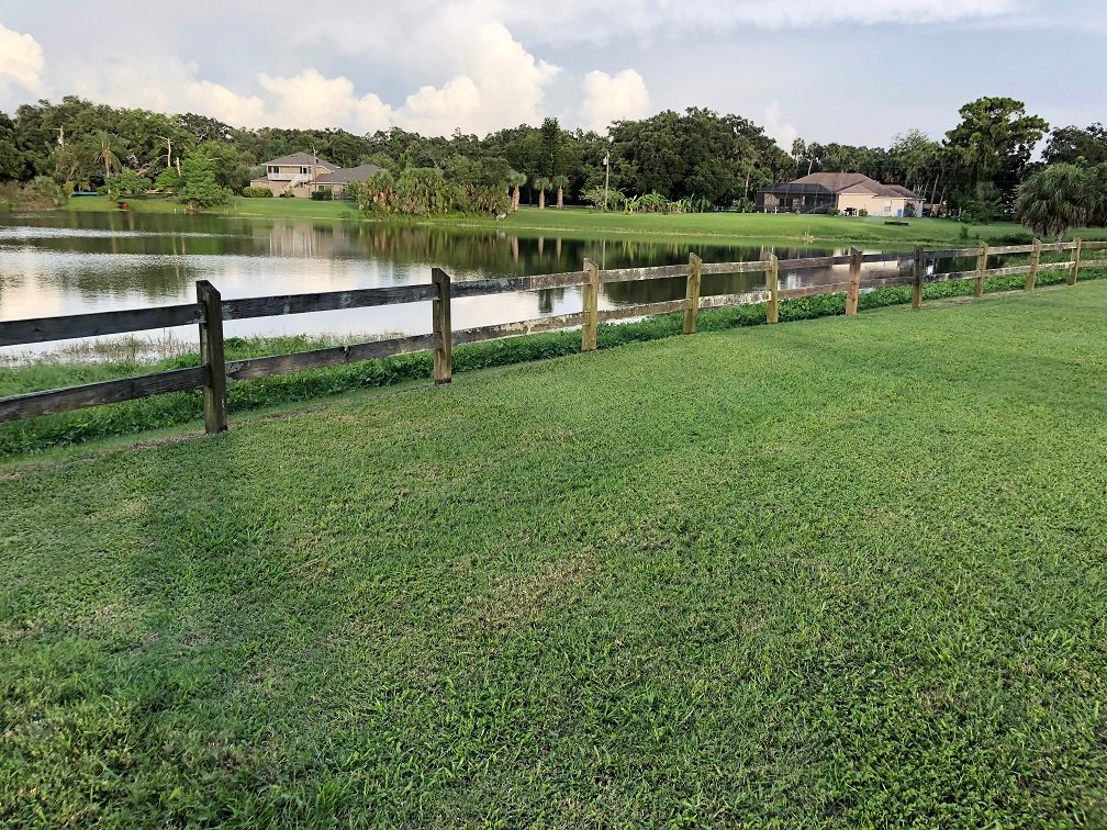Beautiful green grounds , white flowers and water lake . Dreamy place .