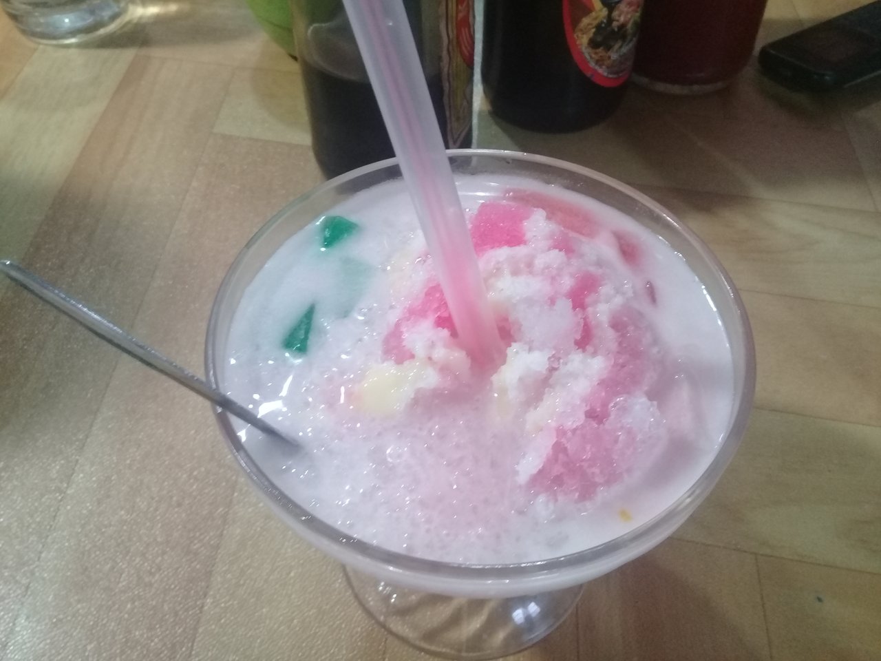 This is the name of ICE TELER .. it feels very good, the composition used is coconut milk, sugar, water, syrup, sweet corn, jackfruit, seaweed, green beans, jelly, sweetened condensed milk, and avocado.
