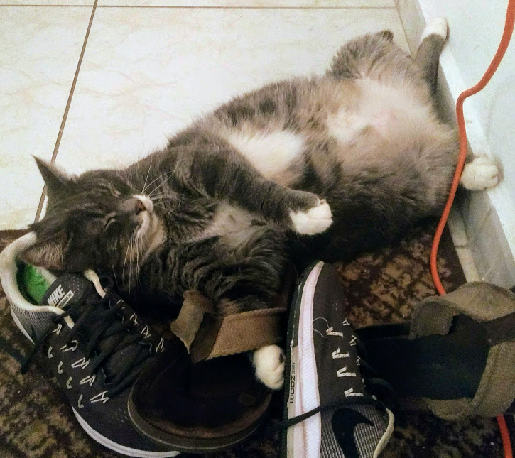 This is how we felt after eating haha Actually, this is how we found Buddy when we got home; intertwined in our shoes. He must have been missing us! Brian was very tired and not feeling so great by the end of the day, but I see it as a very positive sign that he had the energy to even get out in the first place!