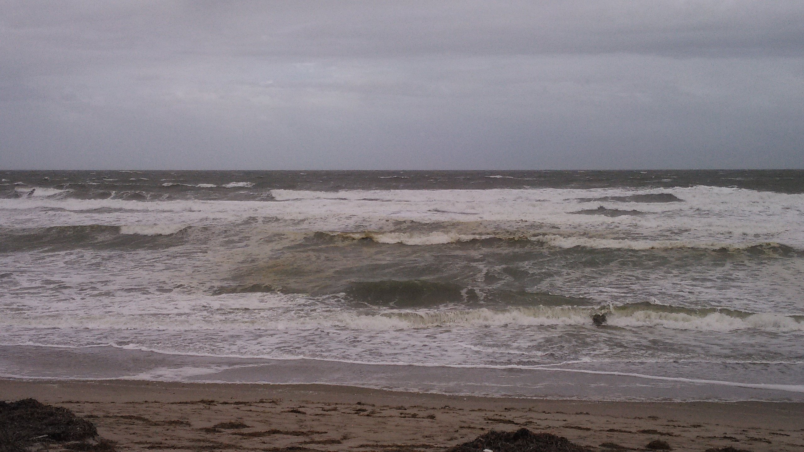 This made the ocean very fierce. The beach is being pounded. It is stemming from offshore as a lot of stuff is coming onshore.