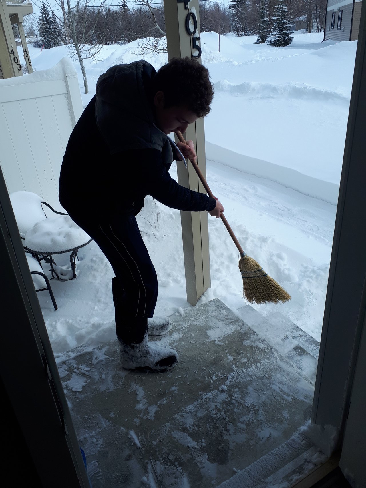 Took some time to get courageous enough to go clear the step. And, when i was ready to head out my son cheerfully offered to do it!! Awe ๐