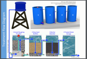 I quickly found this video that shows a method of filtering 300 litres of water per day.