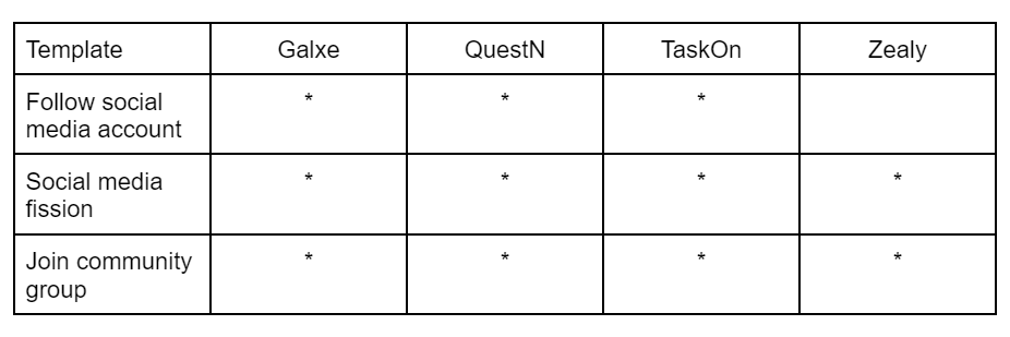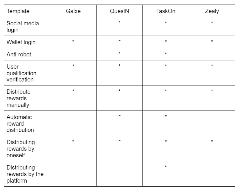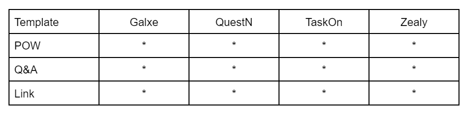 This is because Web2 tools such as Gleam cannot meet the requirements of tasks on the Web3 chain, such as NFT mint, Token Holder, and Trading. As a result, native tools such as Galxe, QuestN, and TaskOn have emerged to match the needs of Web3.