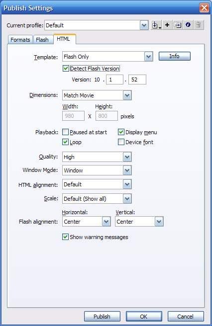 . Enter File - Publish Setting command from the menu You can find the dialog box to find out how to get the output. Let's take a look at the flash format first.