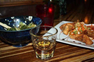 My dinner came quickly, and one of the dishes was spicy, which seemed to bring out the spice of my Scotch in a stronger way. A word that came to mind as Glenfiddich and I continued our conversation was "slick." He was very smooth, and mellow...charming really, but also had another taste to him that became more apparent as the evening drew on. I couldn't quite place it; I thought perhaps nutty..maybe tobacco or ash? Slightly bitter - not unpleasant, but rather distinctive. It made me stop and notice that there were more layers to him than I may have originally thought.