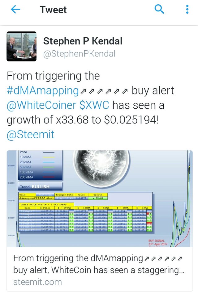 From triggering the #dMAmapping⇗⇗⇗⇗⇗⇗ buy alert, #WhiteCoin has seen a staggering growth of no less than x 33.68 to the current price of $0.025194.