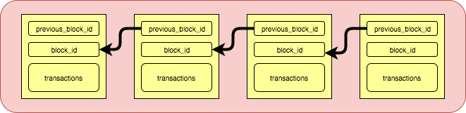 Thanks to the fact that each block has unique id it is possible to "weld" them together. In practice, it looks like the new block contains a reference to the previous one and this build a chain called blockchain.