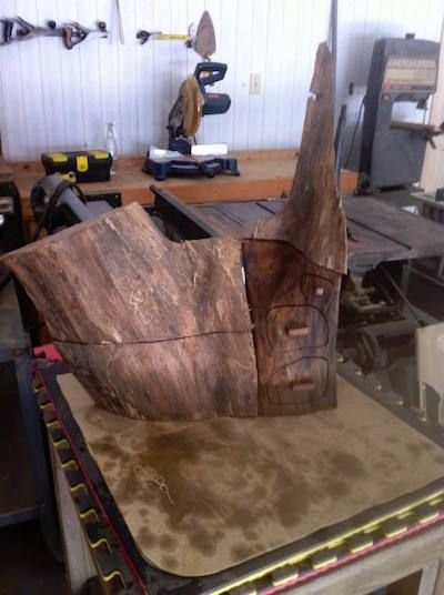 The piece was too large to fit on my bandsaw so I had to cut it into three different pieces to make it work, then reassemble them as three separate units that she sold as a set.