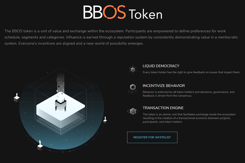 The BBOS token will act as a unit of value and exchange within the ecosystem.