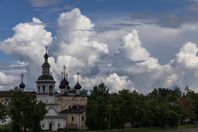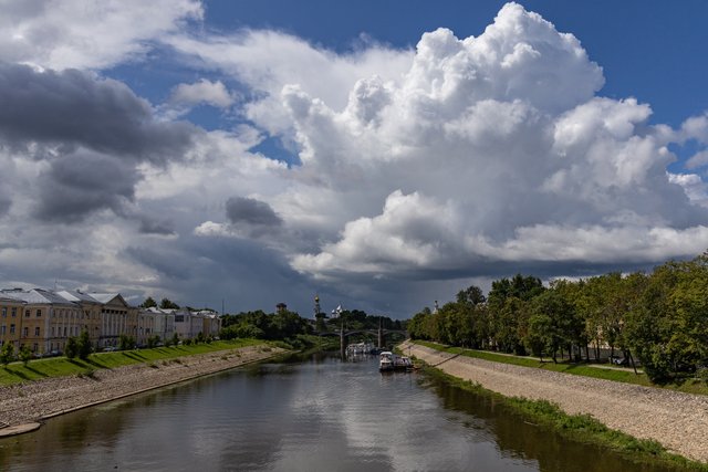 There's something attractive about pre-storm clouds – their curly forms makes any picture look interesting. In fact, these are very dense and voluminous cumulus clouds, which then smoothly turn into rain clouds.