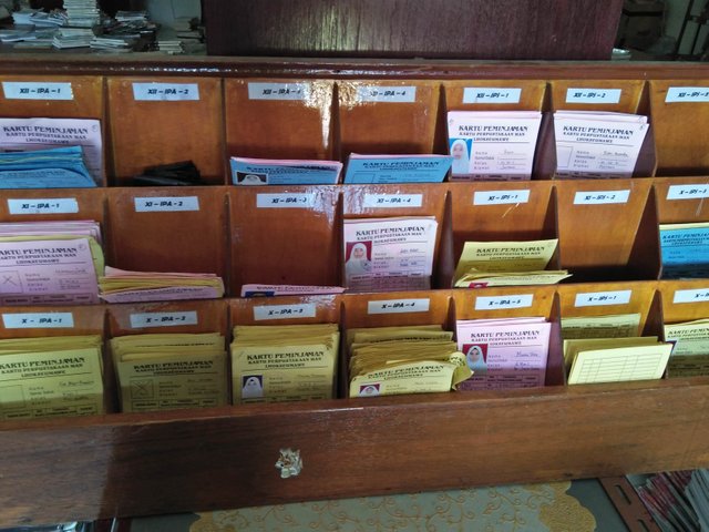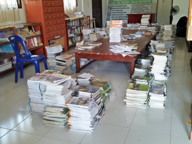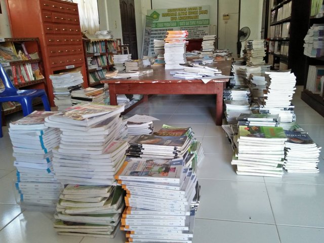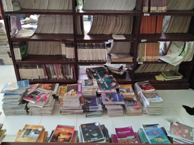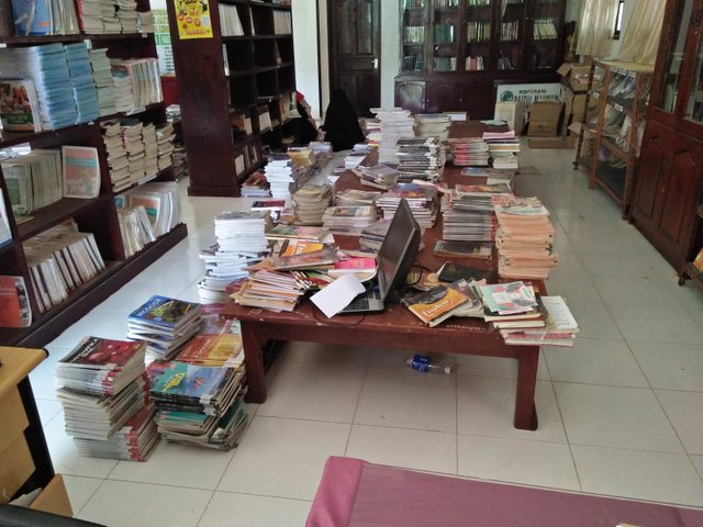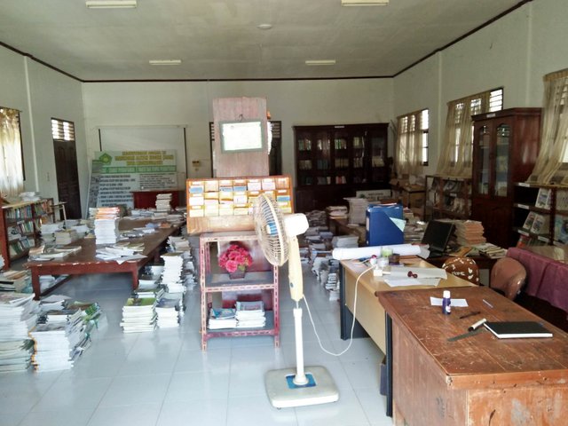 The picture I attach is a library at MAN Lhokseumawe, it's a bit messy because it's the end of an odd semester, so students just return the book they borrowed.