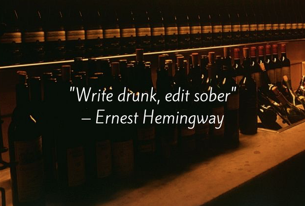 Of course, Hemingway's statement is true for writers, but probably not for editors. For editors, I say, "Stay stone-cold sober and clear-eyed – while editing. Then chill out with as many glasses as are necessary."