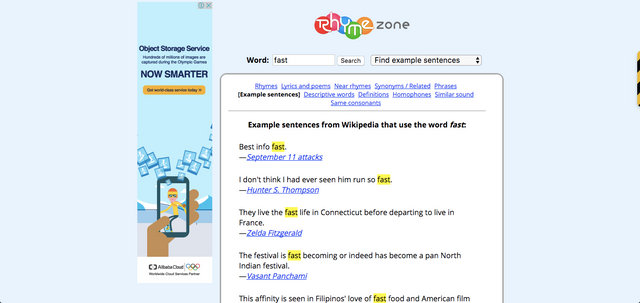 Loaded with not only rhyme search feature, it comes with other amazing searches such as pictures, synonyms, antonyms, examples of sentences, homophones, and the list goes on. It even works as a dictionary (Scroll for ''Find definition'')