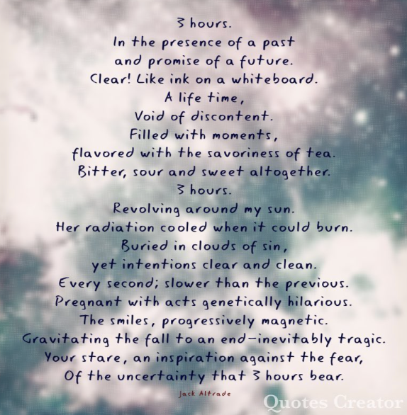 Here is the story that inspired it. We must have all experienced those surreal moments of inexplicable emotional rapids like the love at first sight syndrome (if such a thing exists).