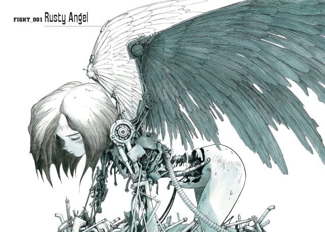 The world of Gunnm takes place in a post-apocalyptic future, as is common with a lot of manga. General audiences are familiar with those nowadays. We follow the story of Alita (Gally in Japanese), a female cyborg who's been found in the junkyard of Scrap Iron City and repaired by Cyber Physician and Hunter Warrior, Ido. As expected, the story plays out in your typical teenage novel fashion. Ido takes her in as his own daughter, Alita falls in love with a boy and goes on a journey on finding her own identity. However, the big twist other than the fact that it's set in a post-apocalyptic future, it's that Alita is physically strong as hell, and can send legions of her enemies flying.