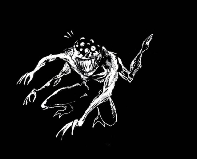 He looks back, and sees three shadowy creatures with glowing eyes following him. They run on their hands and feet, with long tongues flapping between sharp fangs. His car sits on top of a hill. Once he reaches the highest point, he’ll have the advantage.