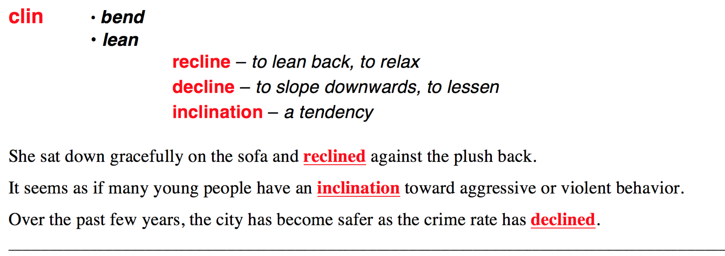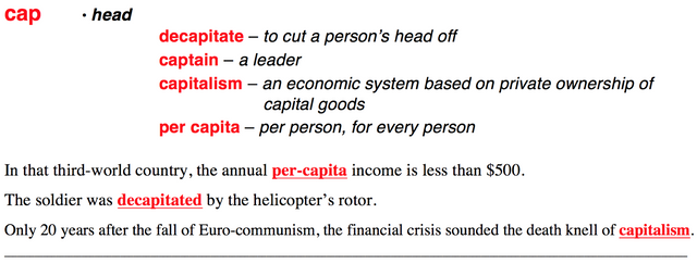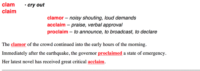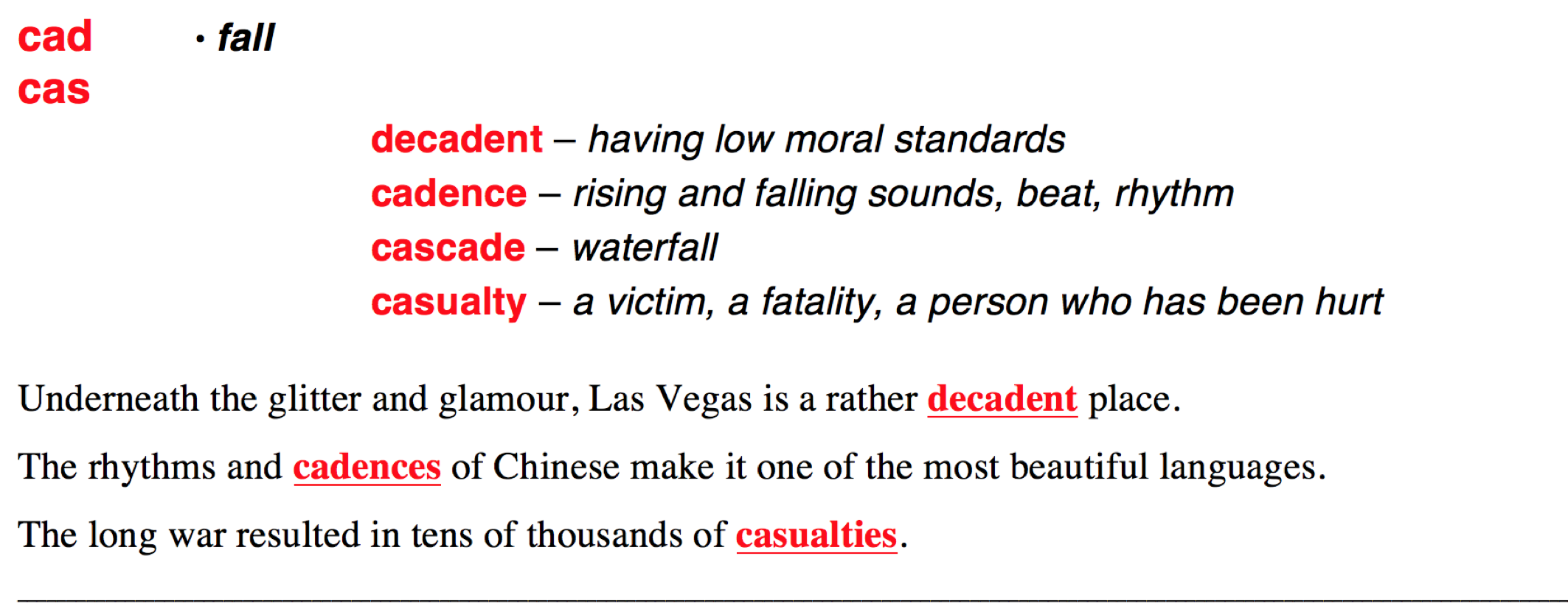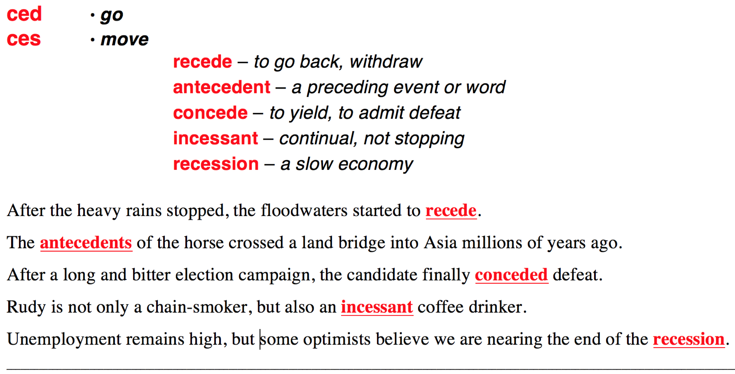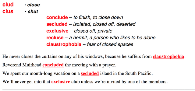 Please feel free to download the following material, copy it, print it out and distribute it for any and all educational purposes. If it helps you or your students increase your English vocabulary, it will have served its purpose. And I will know that my efforts have been beneficial. (Please see my additional comments and notes below the 29 entries.)