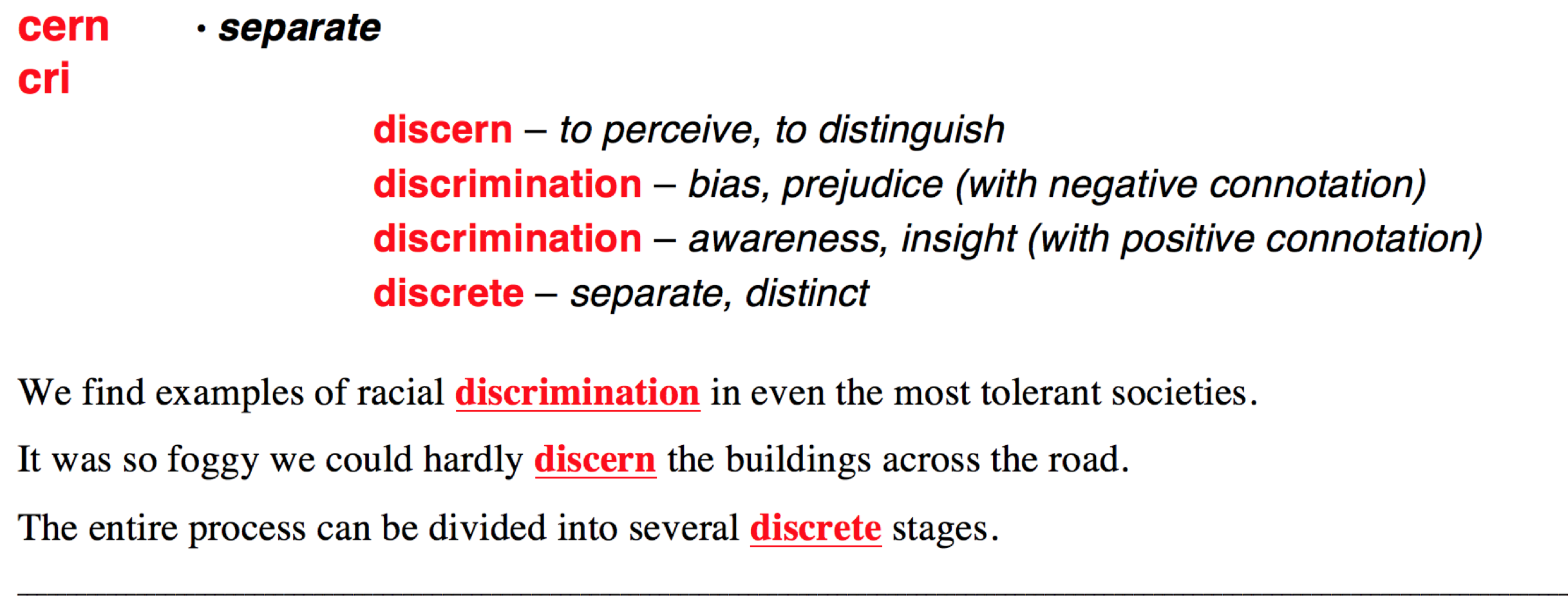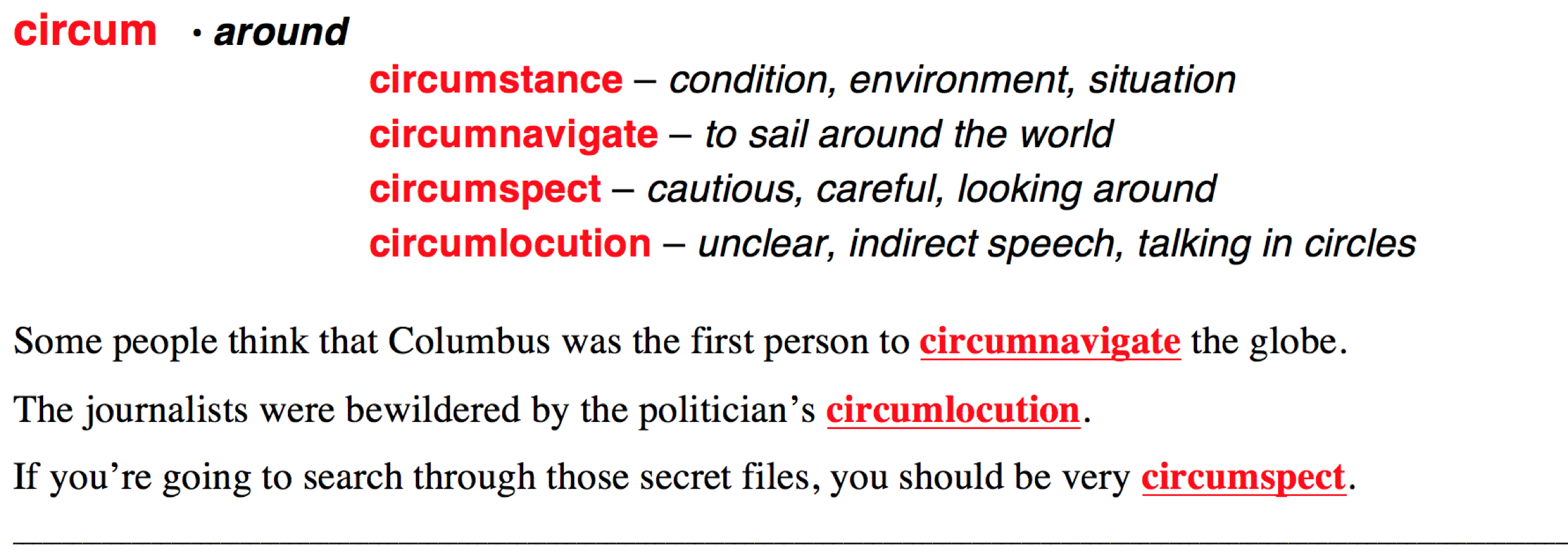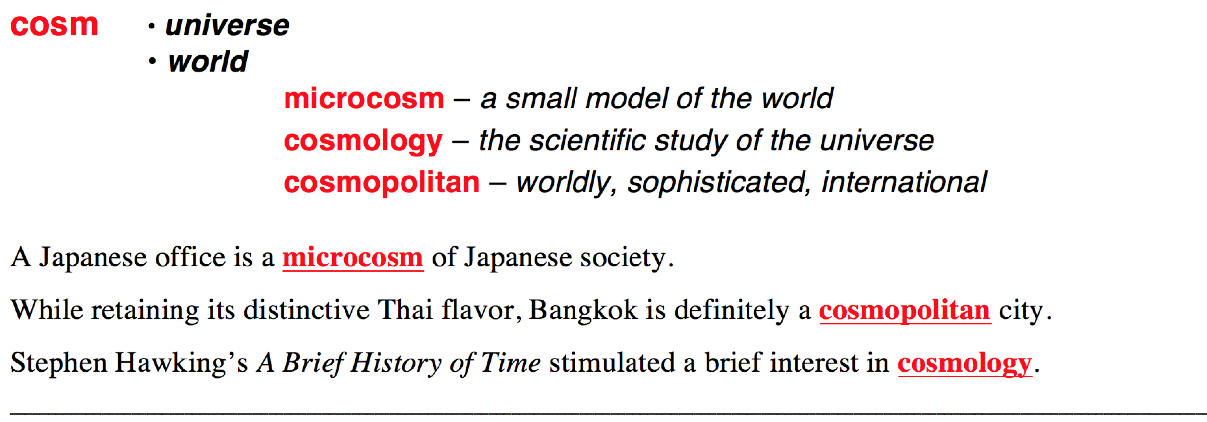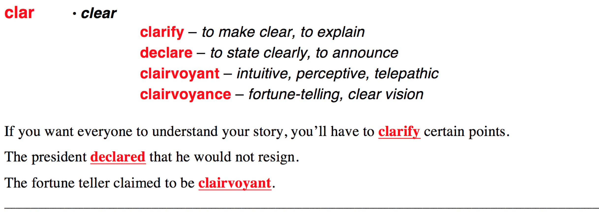 Please feel free to download the following material, copy it, print it out and distribute it for any and all educational purposes. If it helps you or your students increase your English vocabulary, it will have served its purpose. And I will know that my efforts have been beneficial. (Please see my additional comments and notes below the 29 entries.)