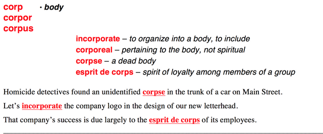 Vocab-ability–45 (corp, corpor, corpus = body)