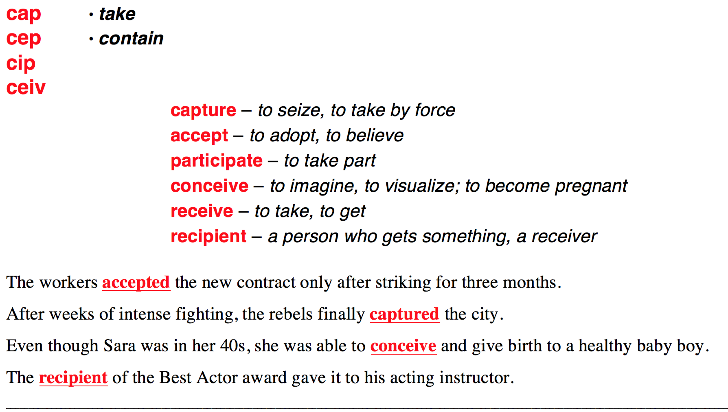 Vocab-ability–26 (cap, cep, cip, ceiv = take, contain)
