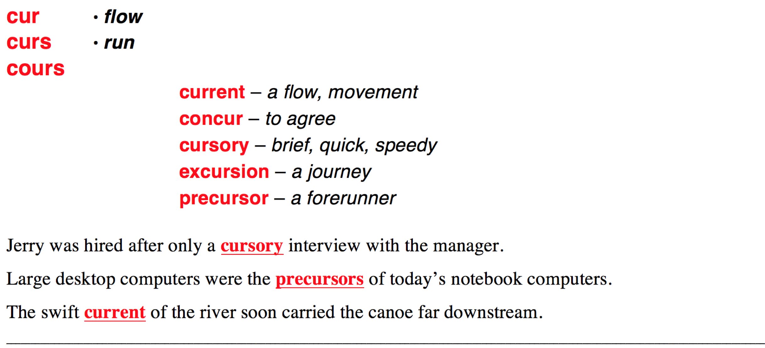 Vocab-ability–52 (cur, curs, cours = flow, run)