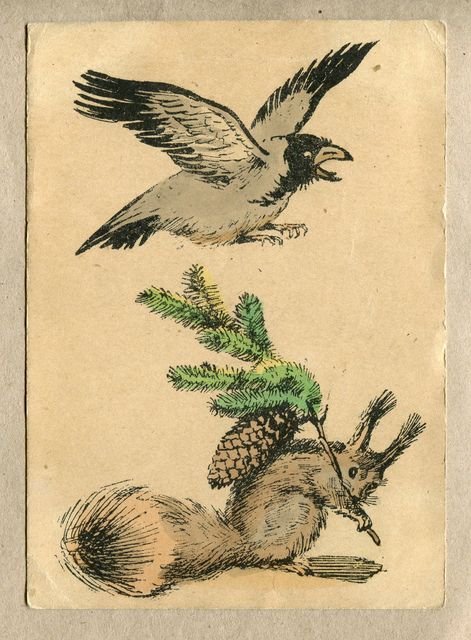 Walking through the forest, a squirrel named Shnurok met a crow sitting on a branch, his name was Glazik. They were childhood friends who grew up together. The house where they were born, was on the same tree, the squirrel lived in the hollow, with his parents, brothers and sisters. Eye lived just above the nest was made very close, they met and began to make friends from an early age.