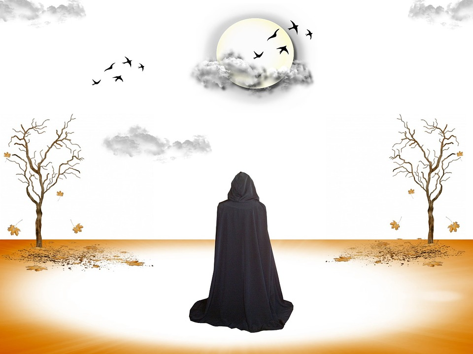 He lied again and said: “I buried you in misery. The Priestess that married us performed the ceremonies. Your severed hand was placed over your heart and I blessed the area before, at dawn. Why are you still in this half-world? What holds you here?”