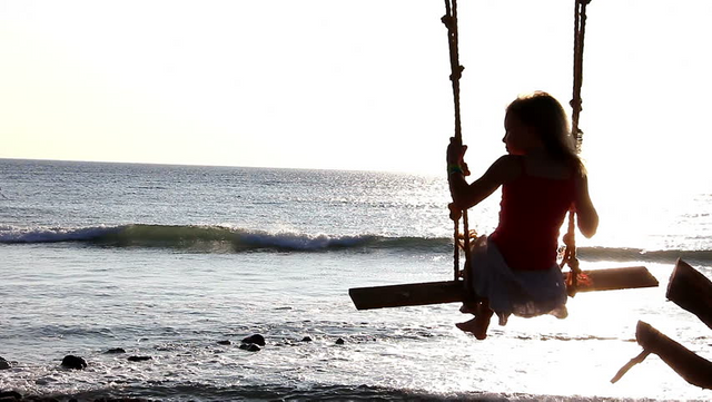 A country girl plays on an island