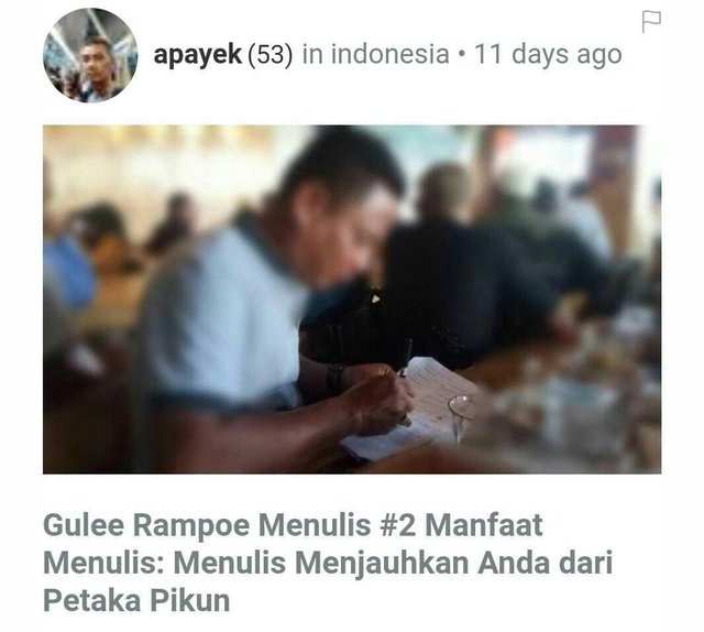 Atau dengan menulis menurut versi @apayek bisa menghindari kita dari penyakit pikun, dengan selalu merangsang otak, sel-selnya akan terus terpompa dengan darah, dan bisa menghindari penuaan organ otak kita.