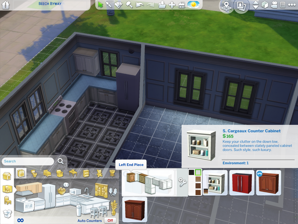 Once you open the Objects by Room tab, you will be able to click through the different furnishings. The more expansions, and stuff packs you have downloaded to your Sims 4 game, the more options you will have to choose from each category. Select the counters for the kitchen, and add any appliances your Sim will need to make a meal. If you do not have a separate dining room, be sure to add a small table and chairs for them to sit and eat every day. Don’t forget a smoke alarm for safety.
