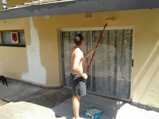 Remember to paint in one motion, you are painting a house not a zebra. Double check for lines that was painted and fix it while it's still possible. Using PVA based paint makes much easier cleaning and save money because you can rinse out your paint brushes after you are done and use them the next time. we did paint white primer over the patched parts.