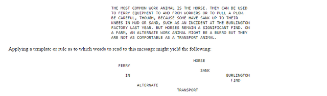 Another form of text on text steganography is one that involves using a template to cover certain portions of the message, revealing the true message with the remaining words, like this one: