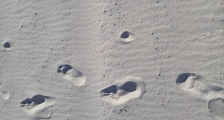 It was early. Way too early for the regular folk and she loved it that way. Alone with her thoughts, she felt peaceful, almost meditative. As she gazed across the sand into the indigo of the ocean, she noticed a set of footprints.