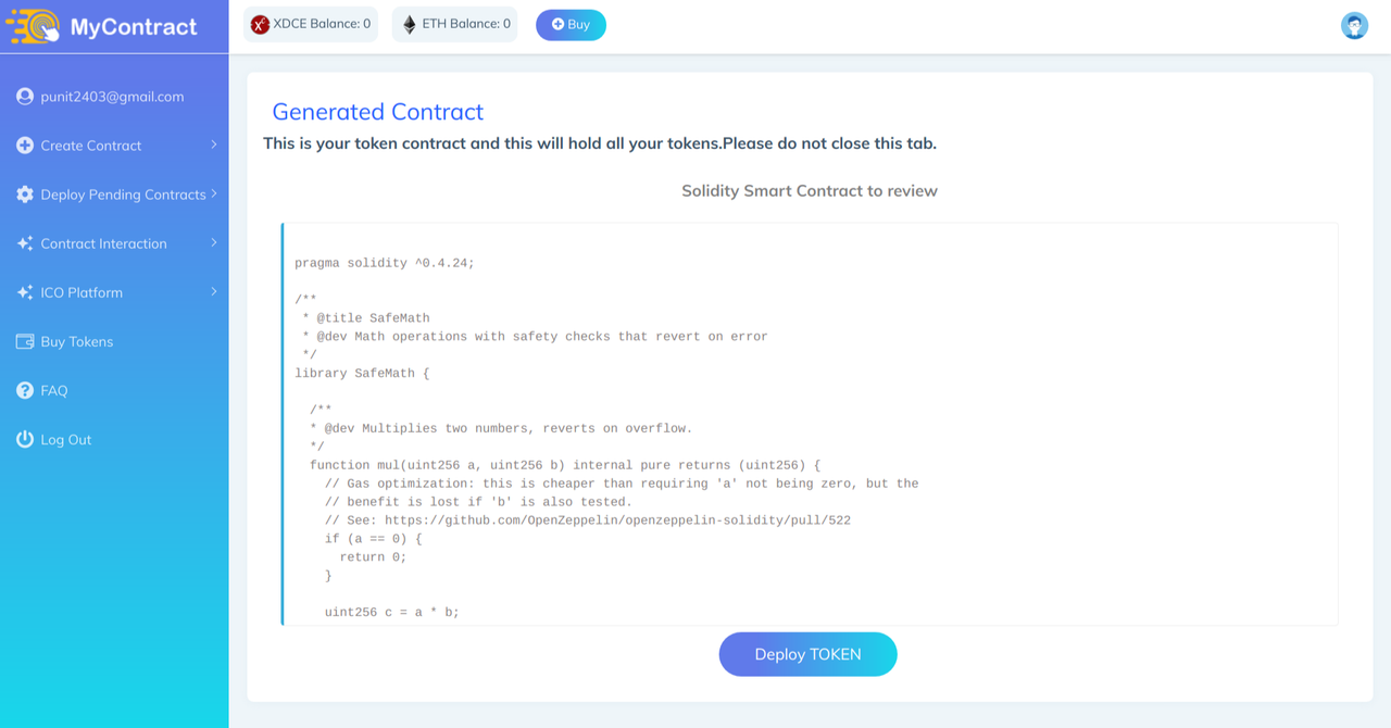 But with the MyContract.co, it offers a webApp that's very user friendly and the whole of this process can be managed within a few clicks. With this platform, creation of smart contracts, tokens and management of ICO can be done with so much ease and simplicity.