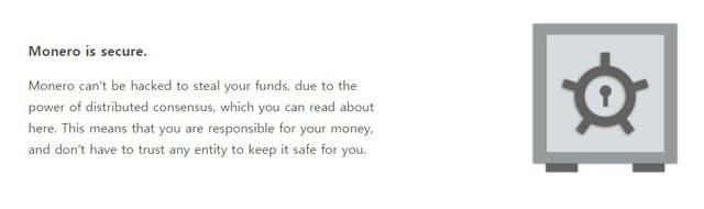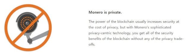 BTC를 포함한 대부분의 가상화폐들은 거래내역을 볼 수 있고 지갑의 잔고도 볼 수 있게 설계되었습니다. 하지만 XMR은 특별한 암호기술을 적용해 누가 거래했는지 알아 볼 수 없게 설계되었습니다. 또 이 기술에 원 타임 키 기술까지 적용해 일회용 주소를 사용함으로서 보안성도 크게 올라갑니다. 기술력으로만 본다면 BTC를 뛰어넘습니다.
