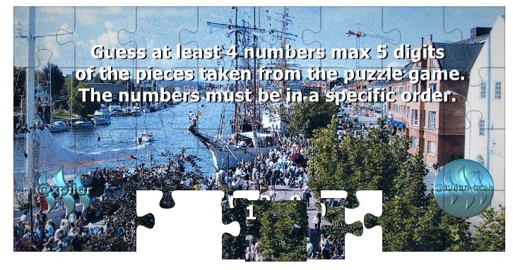 #xpilarcontest Guess at least 4 numbers max 5 digits of the pieces taken from the puzzle game. The numbers must be in a specific order. You can win 10 Steem