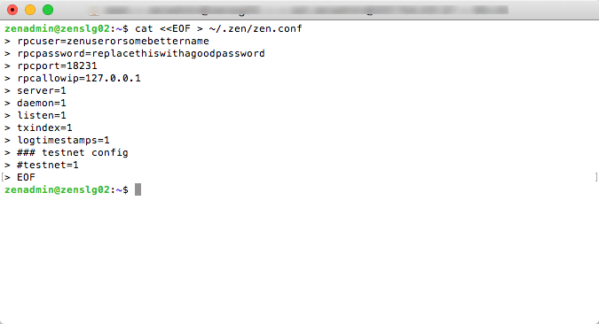 Section 4: Add the zenadmin user to help secure your node.